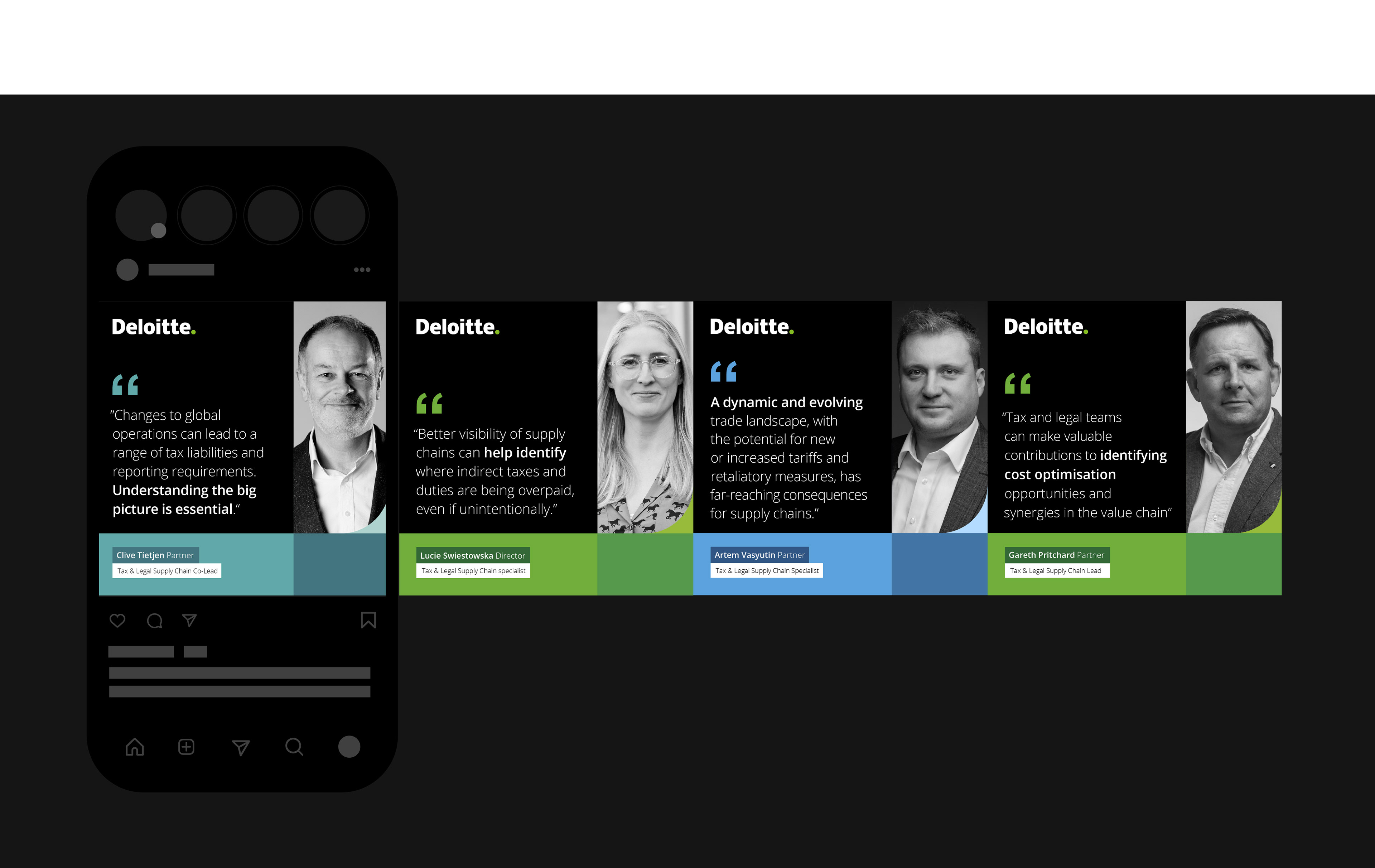 I spearheaded and art directed the use of having a photoshoot to accompany bids within the UK firm. Deloitte often promotes itself as a 'people company', but would use stock images within it's marketing materials.
